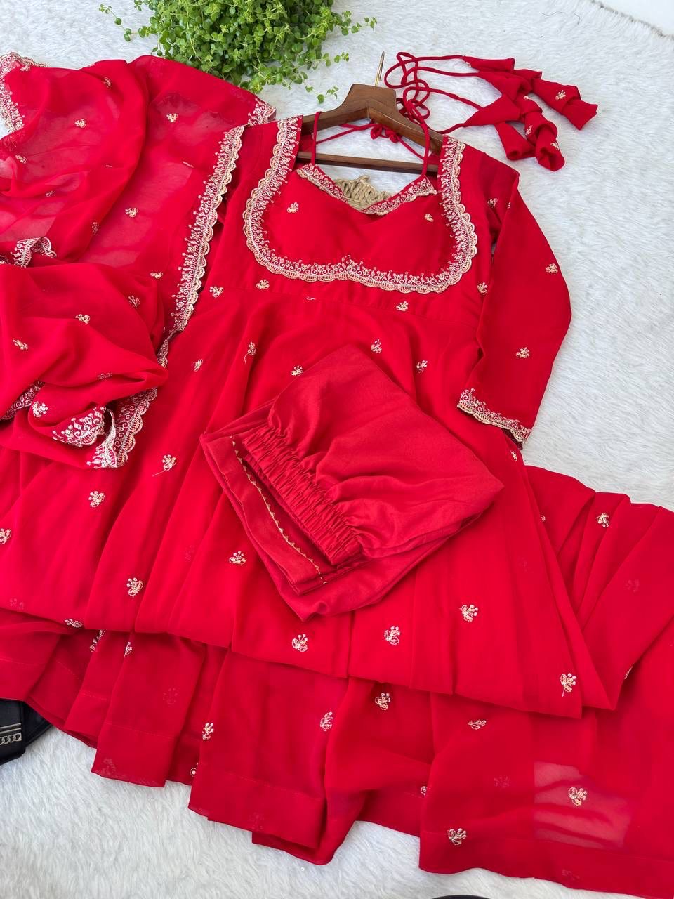 Gown Febrics Fox Georgette Heavy Quality Fabric With Rembo Sequence Embroidery Neck And Sleeve ,With Creap Pant , Duptta For Said Embroidery Sequence lace broder