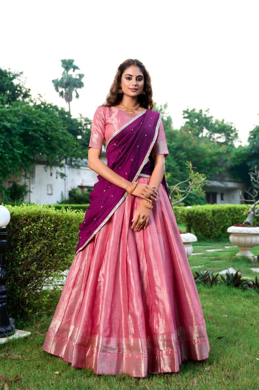Lehenga - (stitched) Plain with zari weaving work border